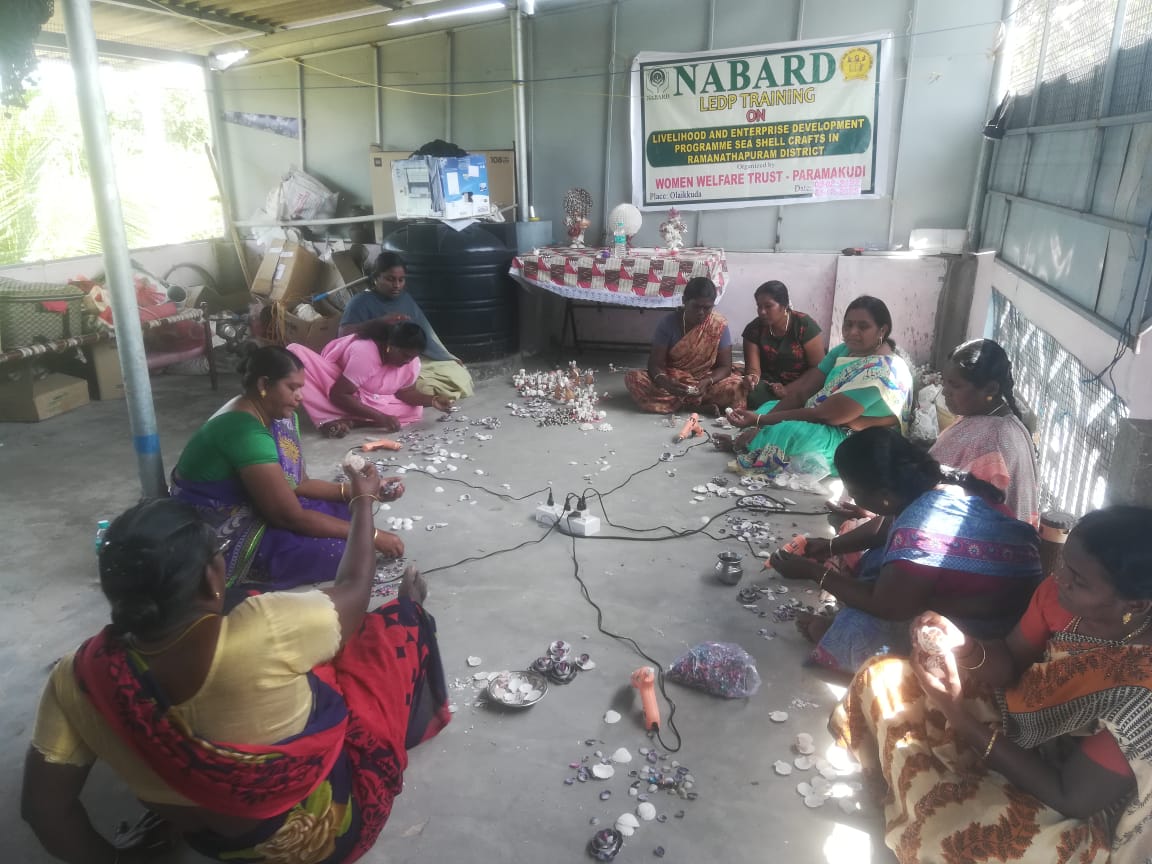 LEDP skill training Programme was organized on 09-02-2022 to 25-02-2022 at Thangachimadam. Women Welfare Trust is organized LEDP skill training Programme for 30 SHG Members those who belong to the rural background. The trainees are get trained on how to make Sea Shell Craft Products with on Skill training and Exposure Visit. The skill training is organized at Women Welfare Trust was supported by NABARD.